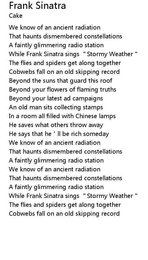 | [00:36] | While Frank Sinatra sings "Stormy Weather" |