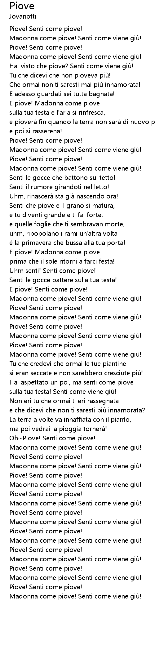 | [03:01.550] | Piove! Senti come piove! |