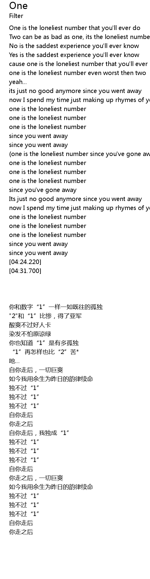 | [04:00.900] | one is the loneliest number |