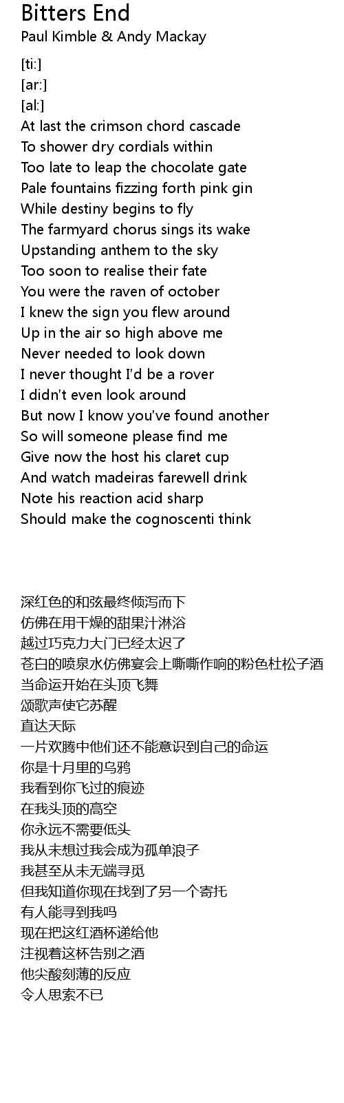| 歌曲 | Bitters End |