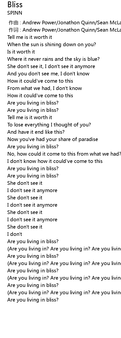 | [03:00.11] | Are you living in bliss? |