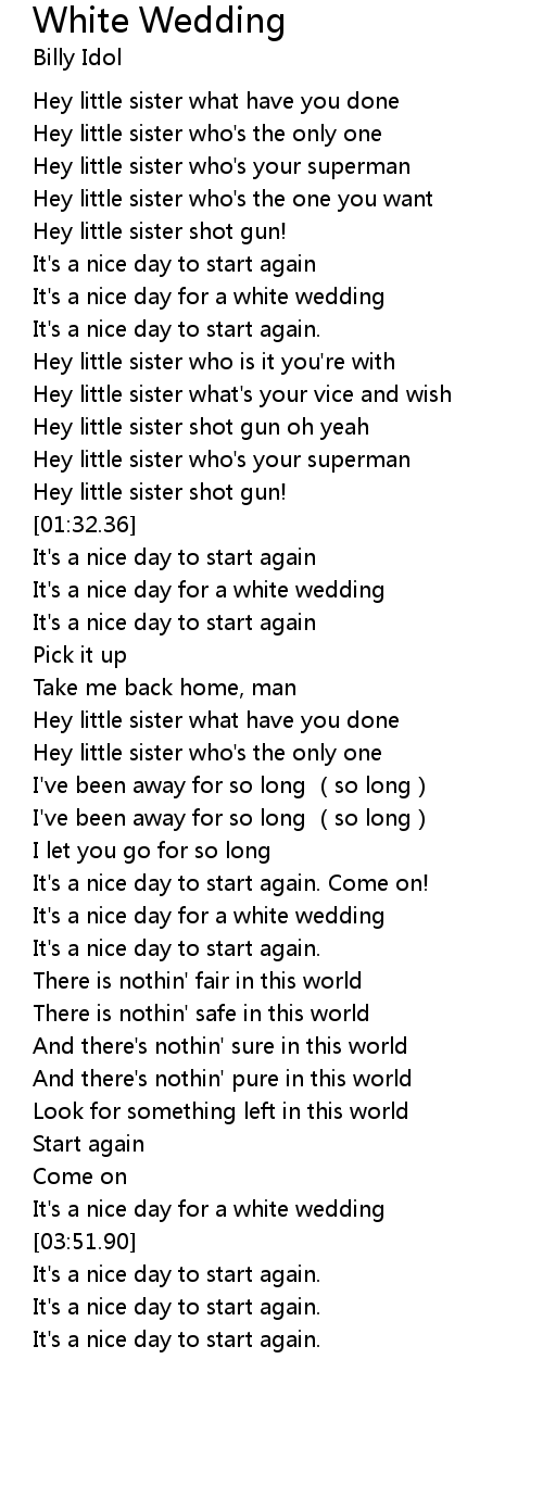 | [01:23.58] | Hey little sister shot gun oh yeah |