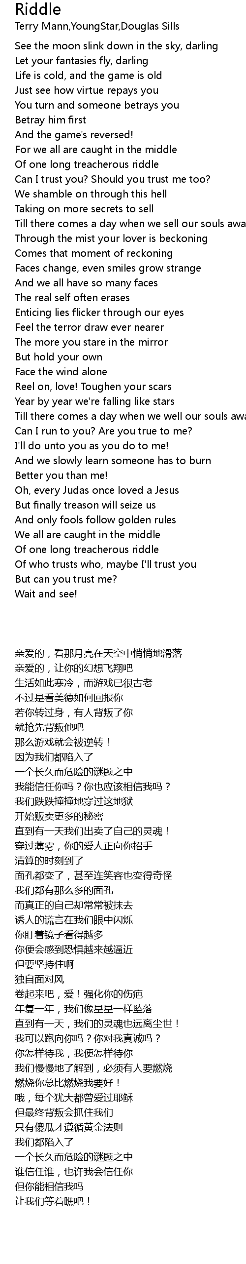Of one long treacherous riddle |