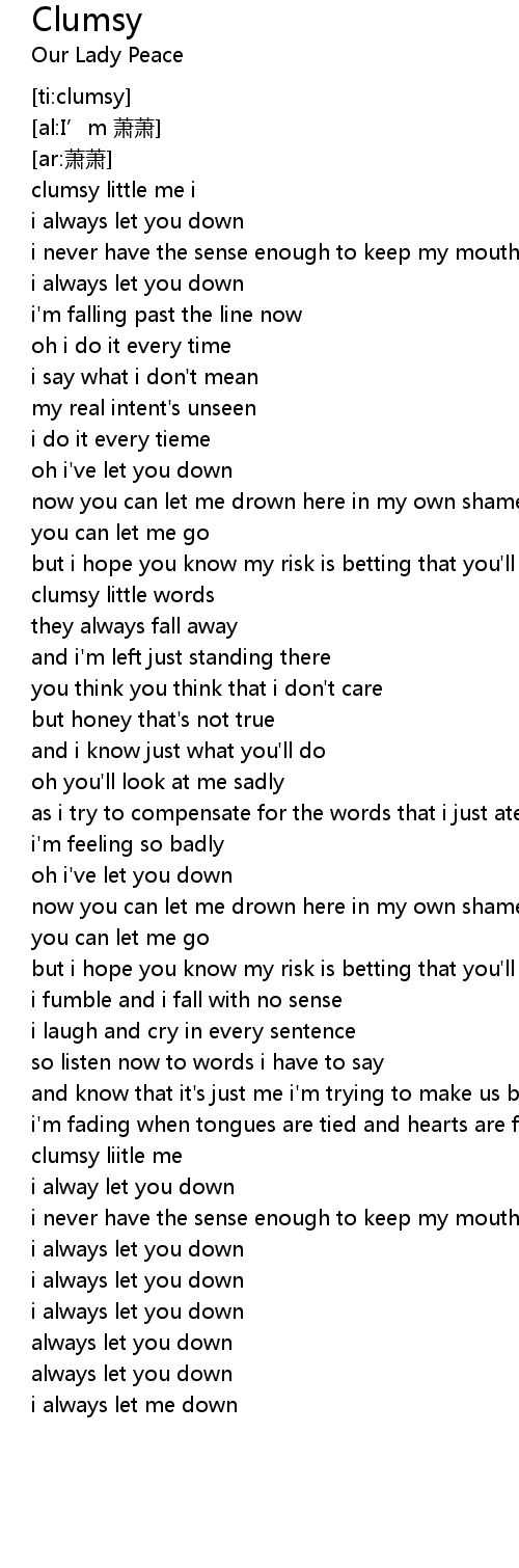 | [01:04.30] | now you can let me drown here in my own shameful tears |