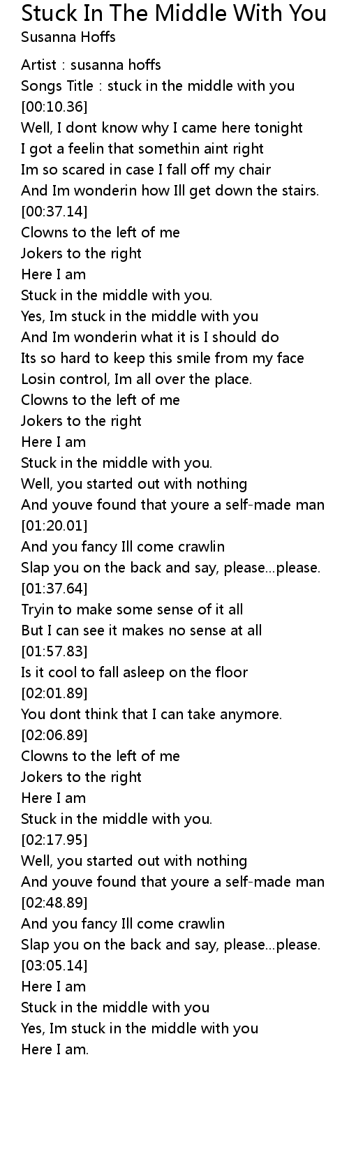 | [00:47.01] | Yes, Im stuck in the middle with you |