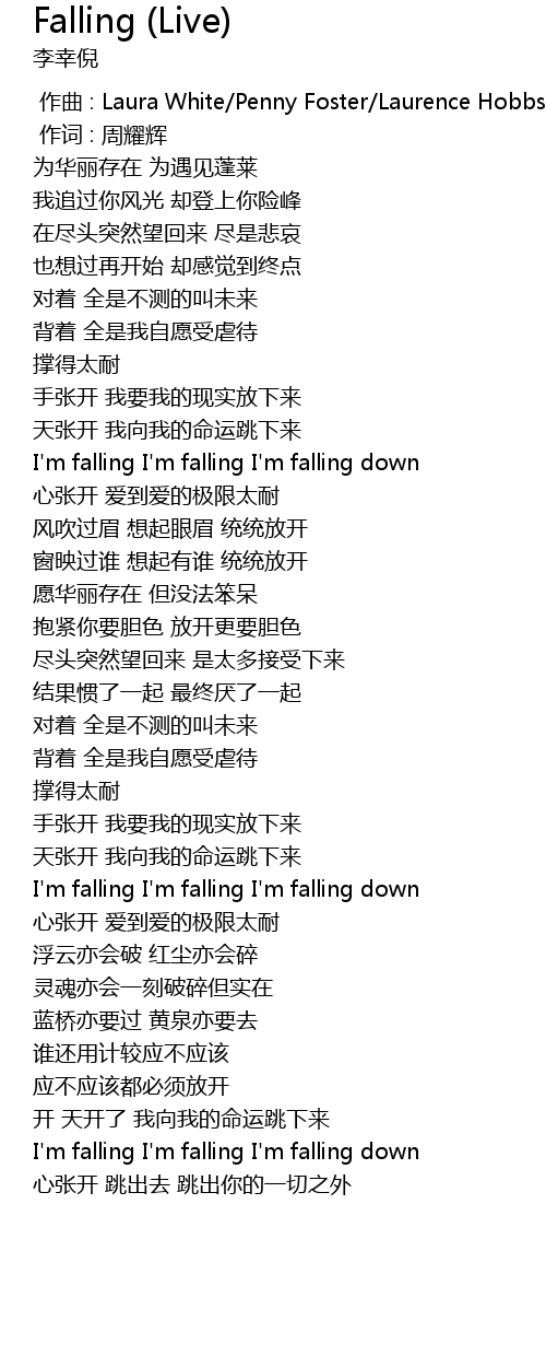 | [01:36.24] | I' m falling I' m falling I' m falling down |