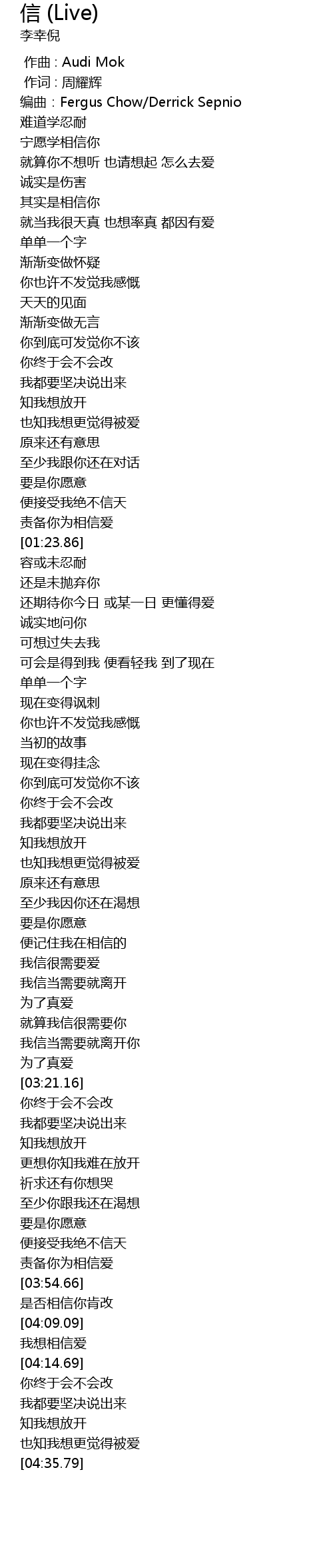 | [00:01.72] | 编曲:Fergus Chow/Derrick Sepnio |