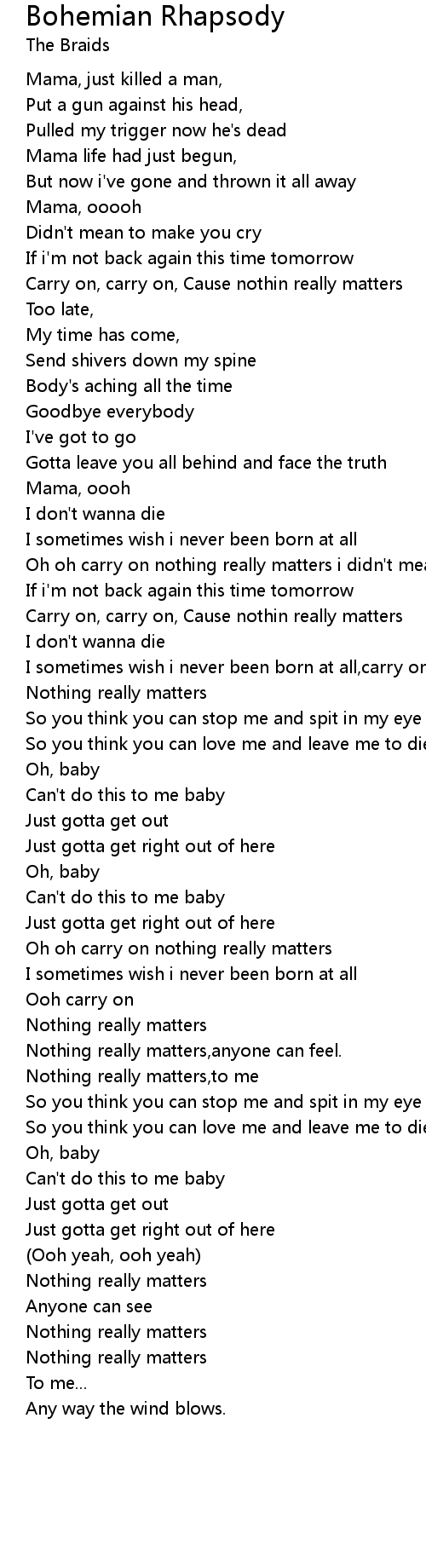 Oh oh carry on nothing really matters |