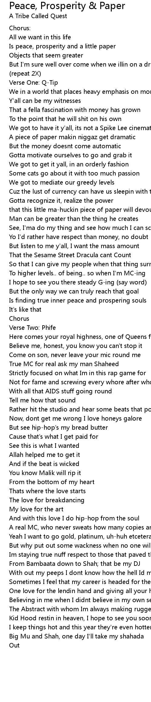 歌曲 Peace, Prosperity & Paper