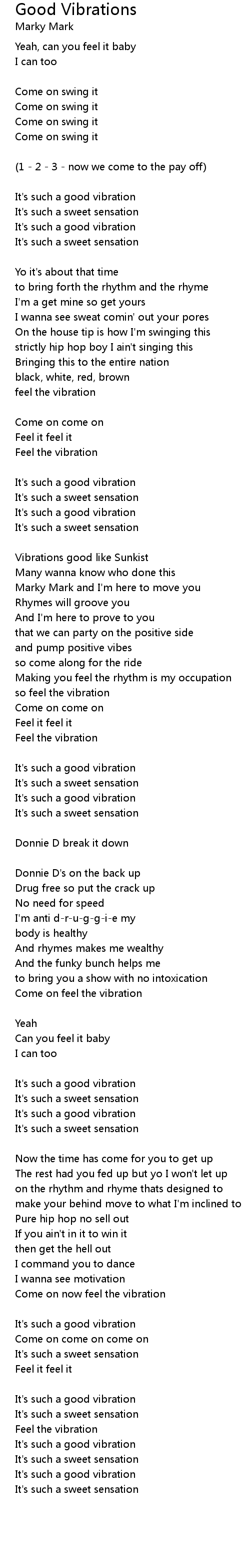 Come on now feel the vibration