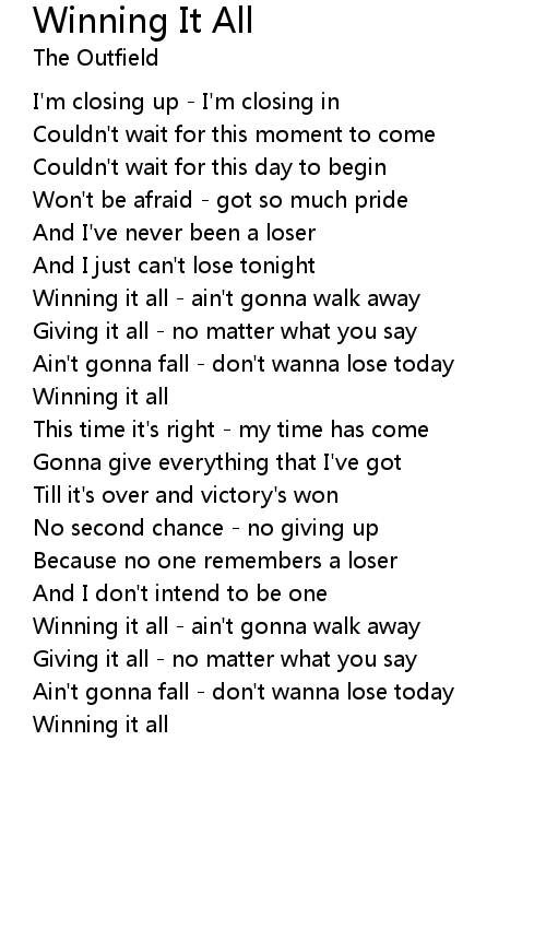 Winning it all - ain't gonna walk away |