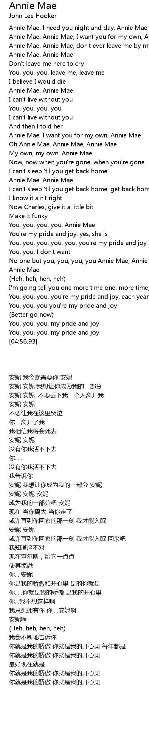 Annie Mae, Annie Mae, don't ever leave me by myself |