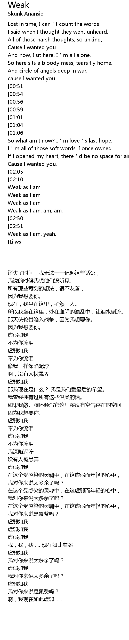 | [02:40] | 我,我,我……现在如此虚弱 |
