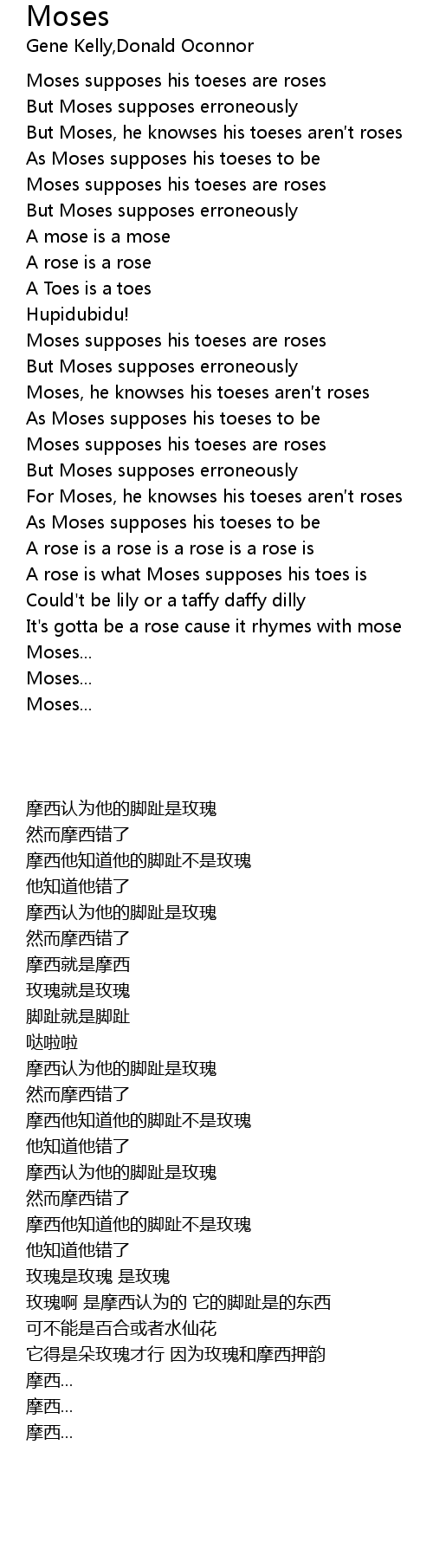 | [00:06.000] | 摩西他知道他的脚趾不是玫瑰 |