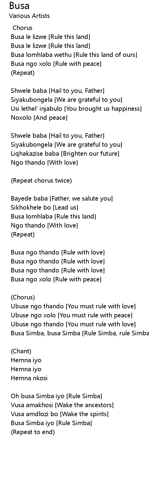 Busa Simba, busa Simba [Rule Simba, rule Simba] |