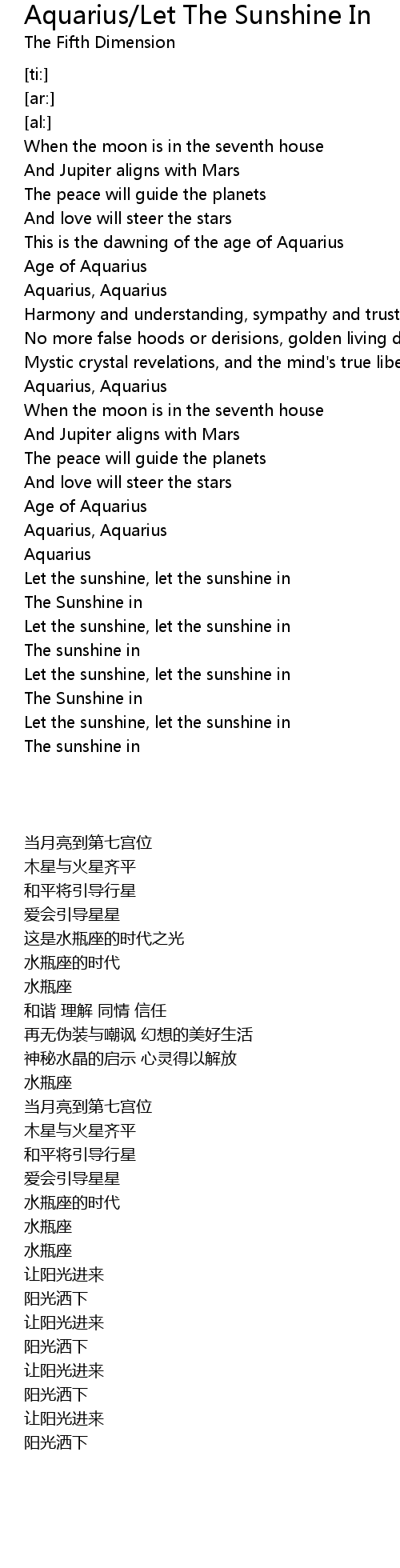 Aquarius/Let The Sunshine In 歌词