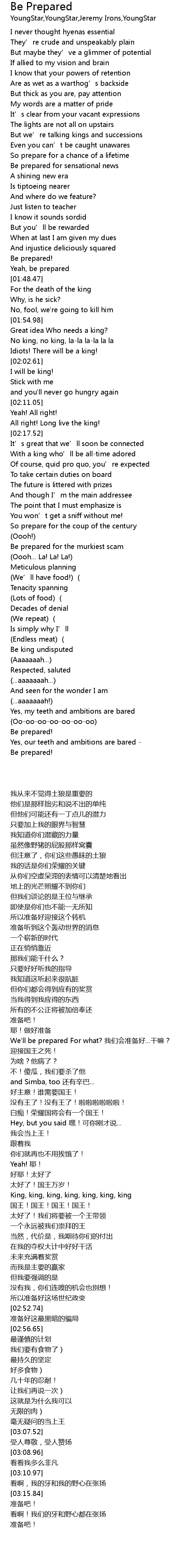 | 歌曲 | Be Prepared |