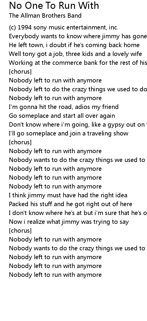 Nobody left to run with anymore |