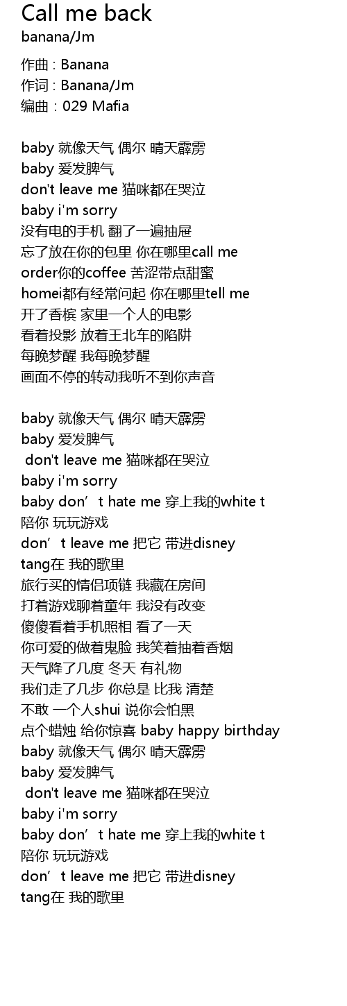 | wang le fang zai ni de bao li ni zai na li call me | |