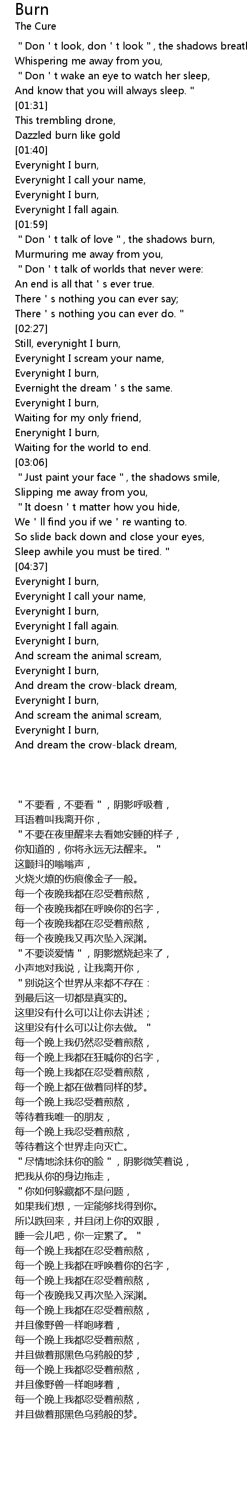 | [04:50] | 每一个夜晚我又再次坠入深渊。 |