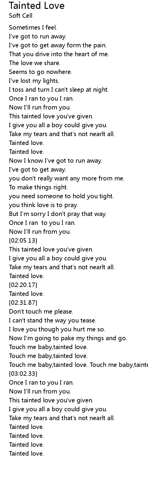 Touch me baby,tainted love. Touch me baby,tainted love |