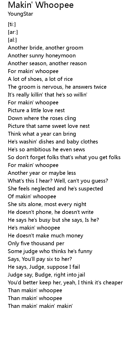 Of makin' whoopee |