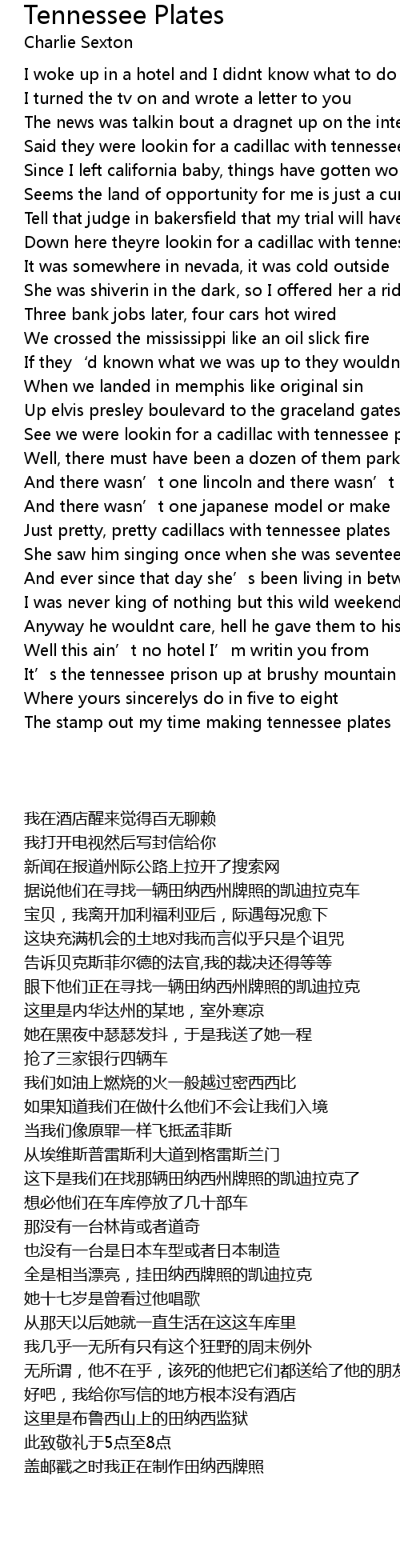| [02:56.00] | The stamp out my time making tennessee plates |