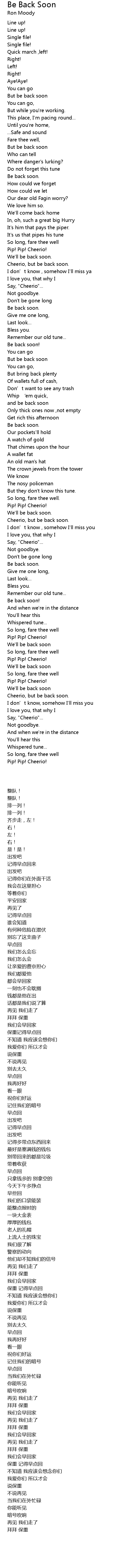 | 歌曲 | Be Back Soon |
