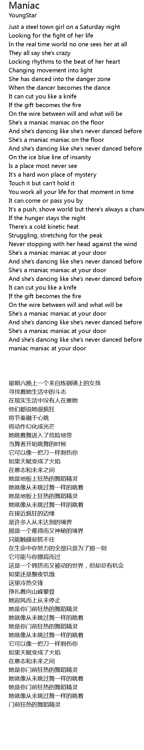 She's a maniac maniac at your door |