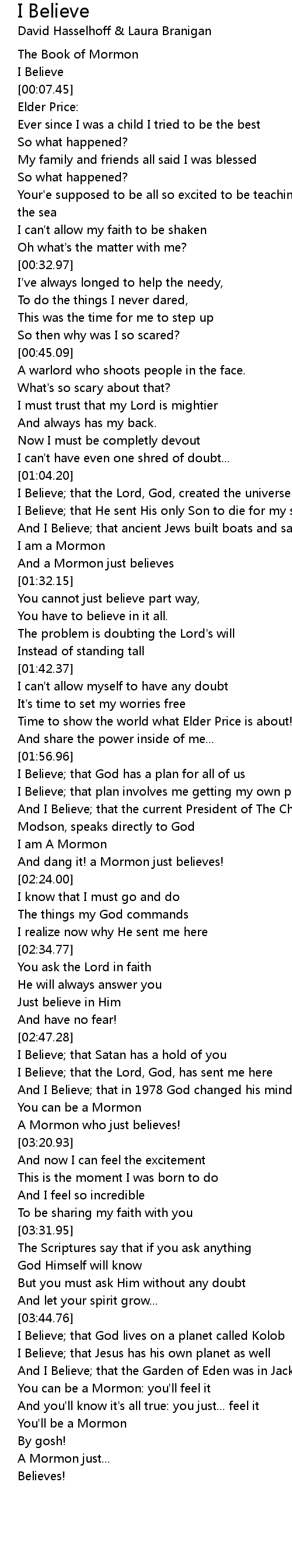 And a Mormon just believes |