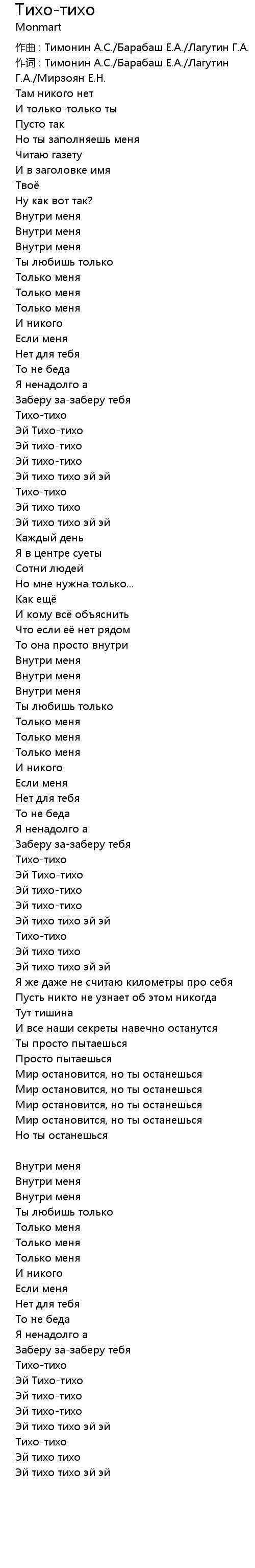 作词 : Тимонин А.С./Барабаш Е.А./Лагутин Г.А./Мирзоян Е.Н. |