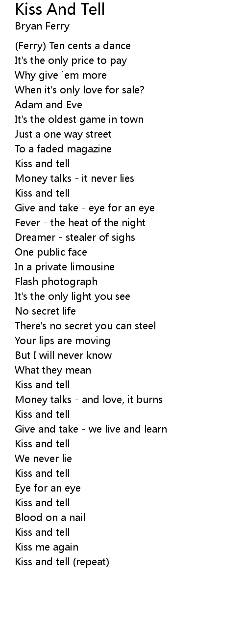 | Kiss and tell repeat |