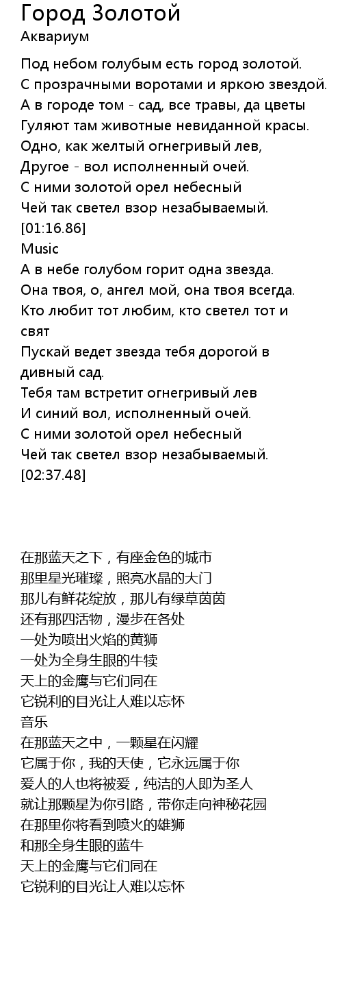 | 歌曲 | Город Золотой |