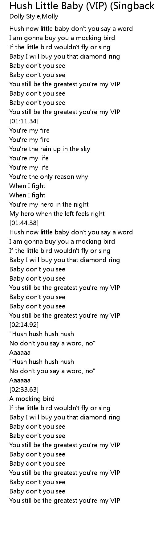 Hush now little baby don't you say a word |