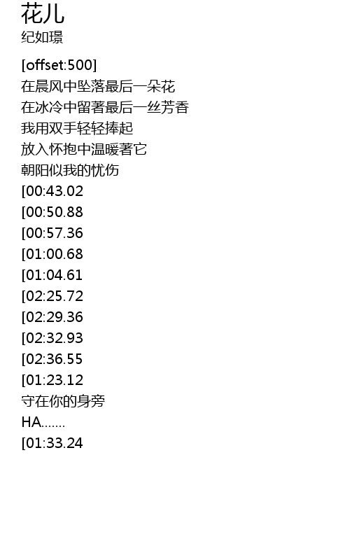 | [00:14.64] | 在晨风中坠落最后一朵花 |