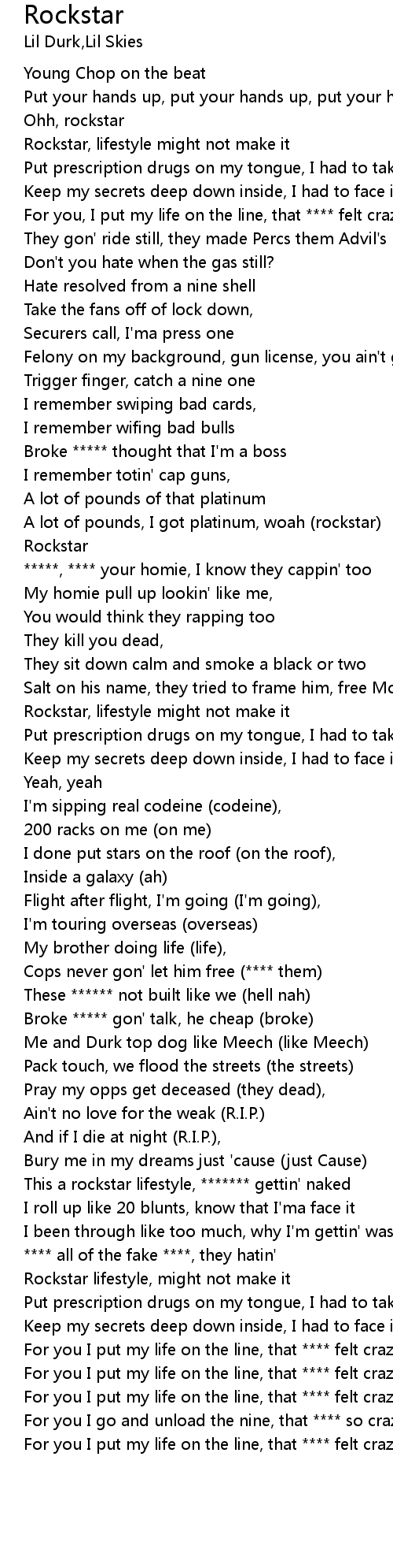 | [01:06.12] | Rockstar, lifestyle might not make it |