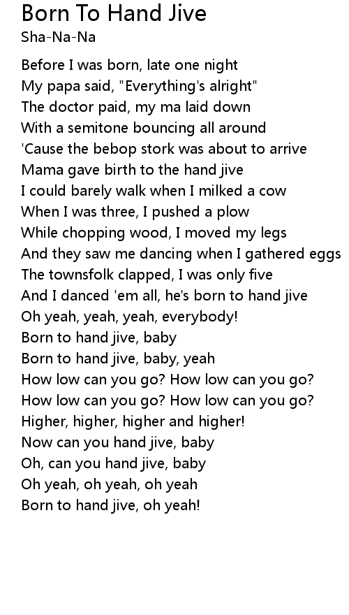 Born to hand jive, baby, yeah