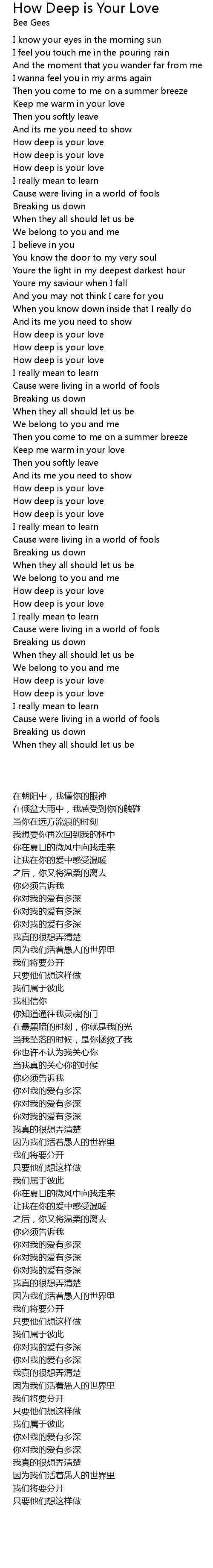 How deep is your love |