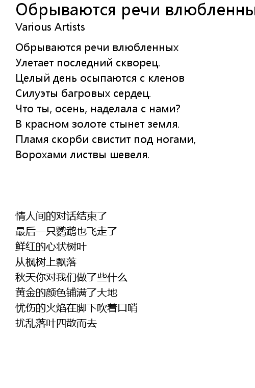 | 歌曲 | Обрываются речи влюбленных |