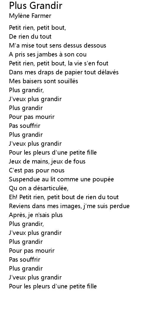 | 歌曲 | Plus Grandir |
