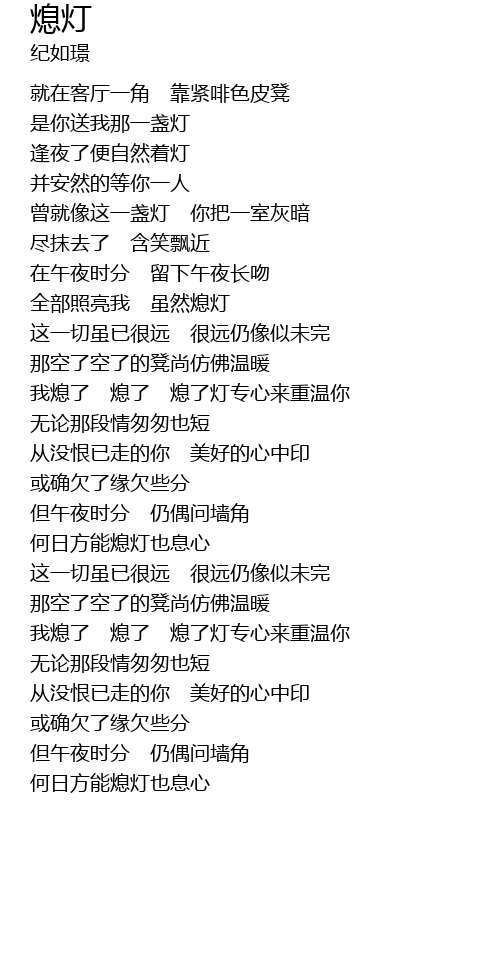 | 我熄了 熄了 熄了灯专心来重温你 | |