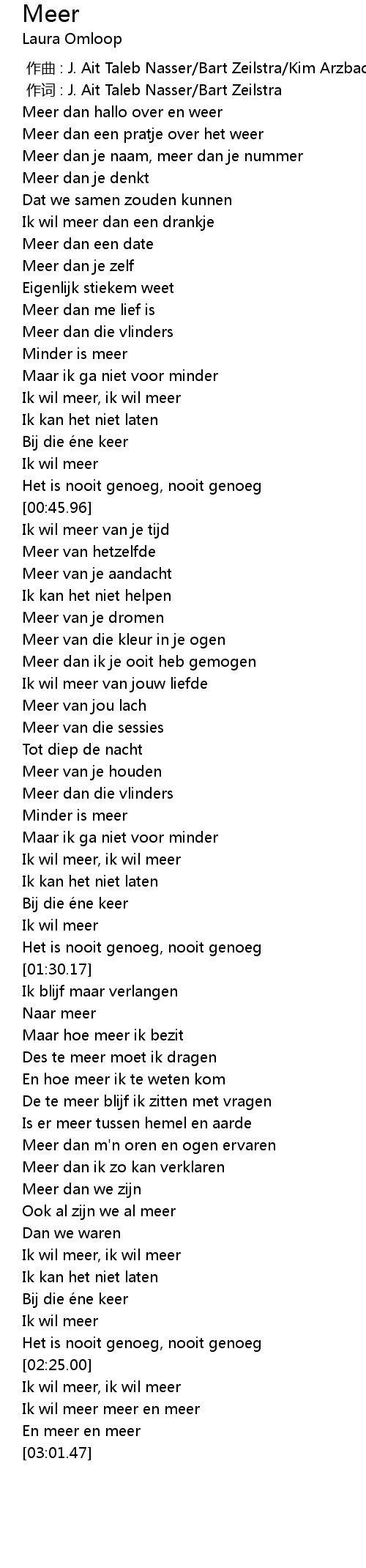 | [02:43.37] | Ik wil meer, ik wil meer |