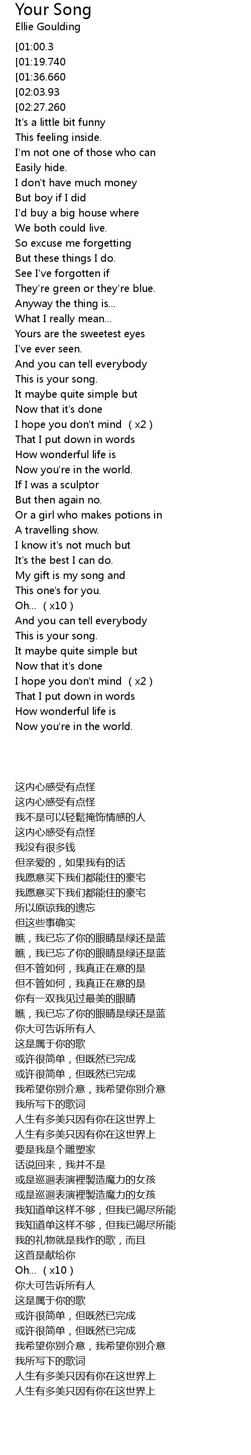 | 歌曲 | Your Song |