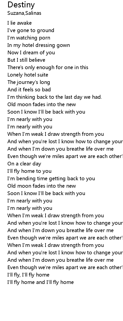 | [02:01.34] | Even though we're miles apart we are each other's destiny |