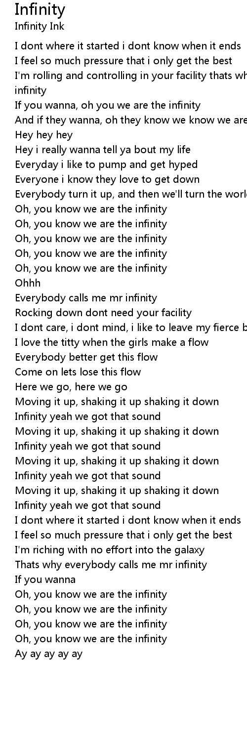 I'm rolling and controlling in your facility thats why everybody calls me mr infinity