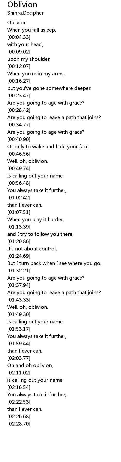 | [00:47.37] | Well..oh, oblivion. |