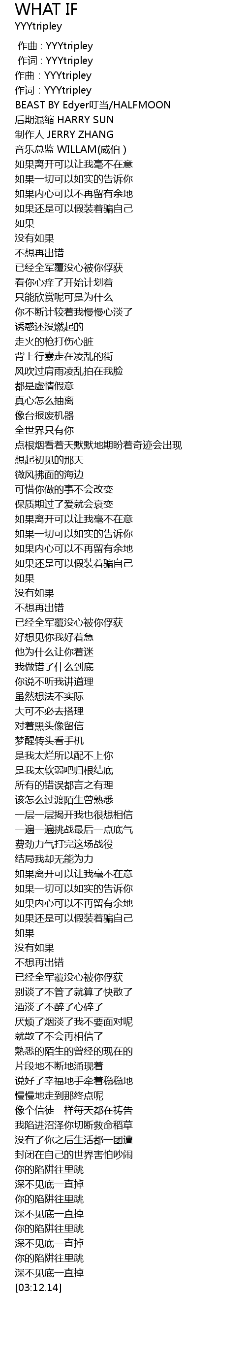 | [00:01.000] | 作词 : YYYtripley |