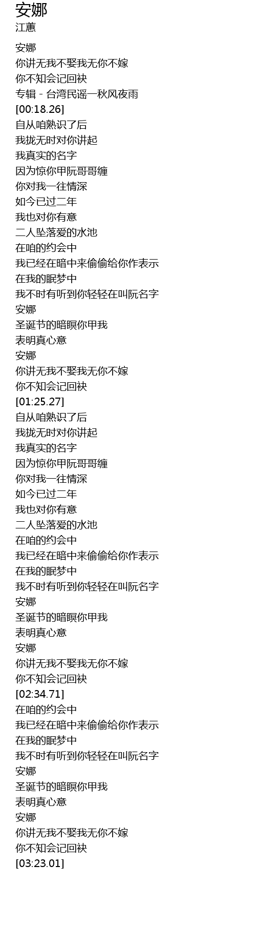 | [00:16.86] | 专辑-台湾民谣一秋风夜雨 |