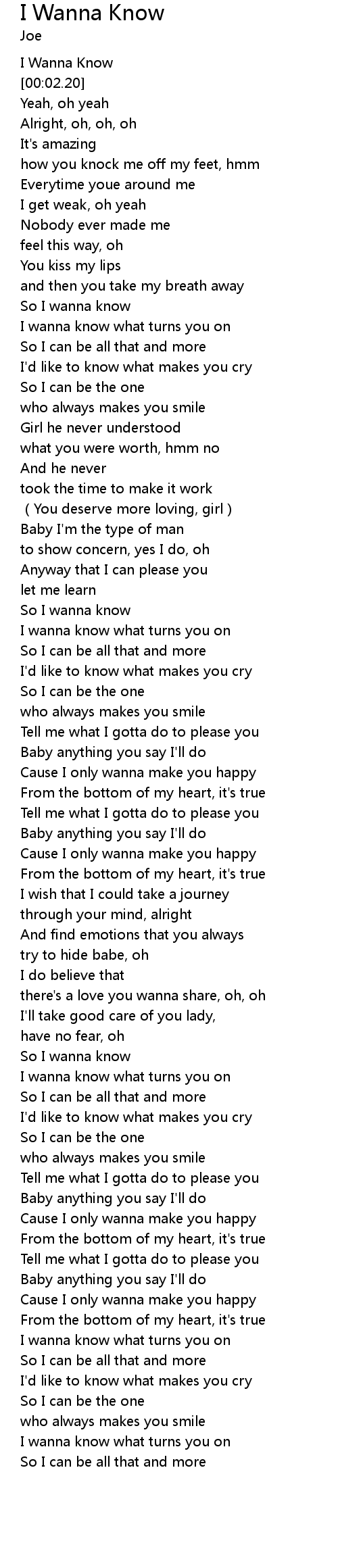| [00:00.00] | I Wanna Know |