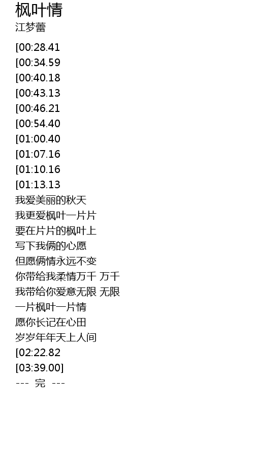 | [02:40.55][00:34.59] | 又见到枫叶一片片 |